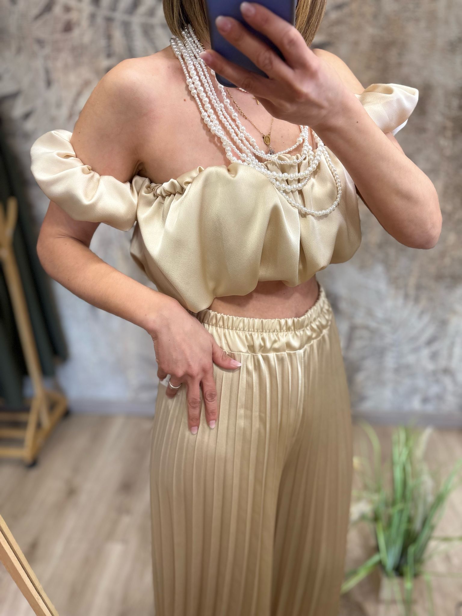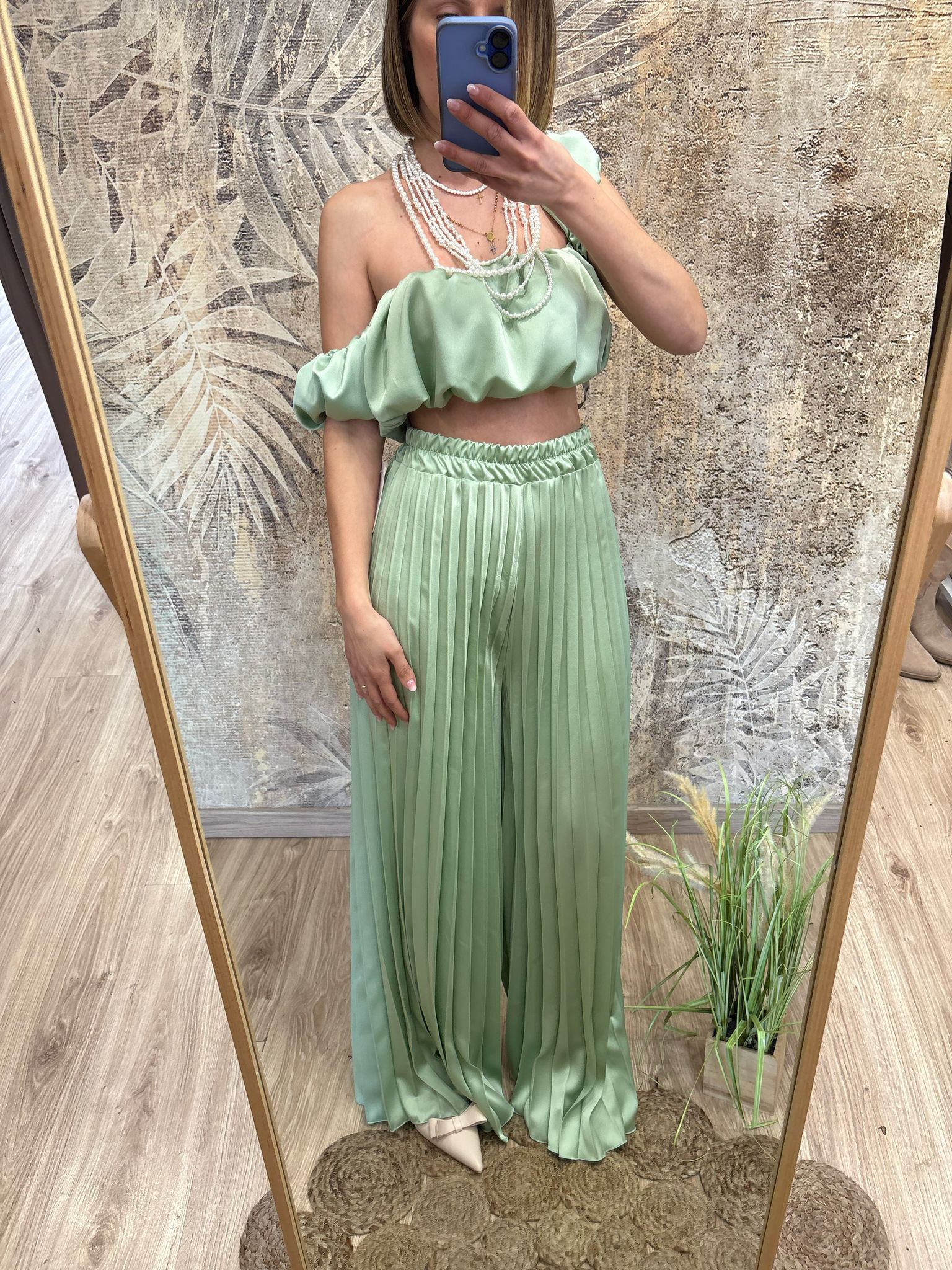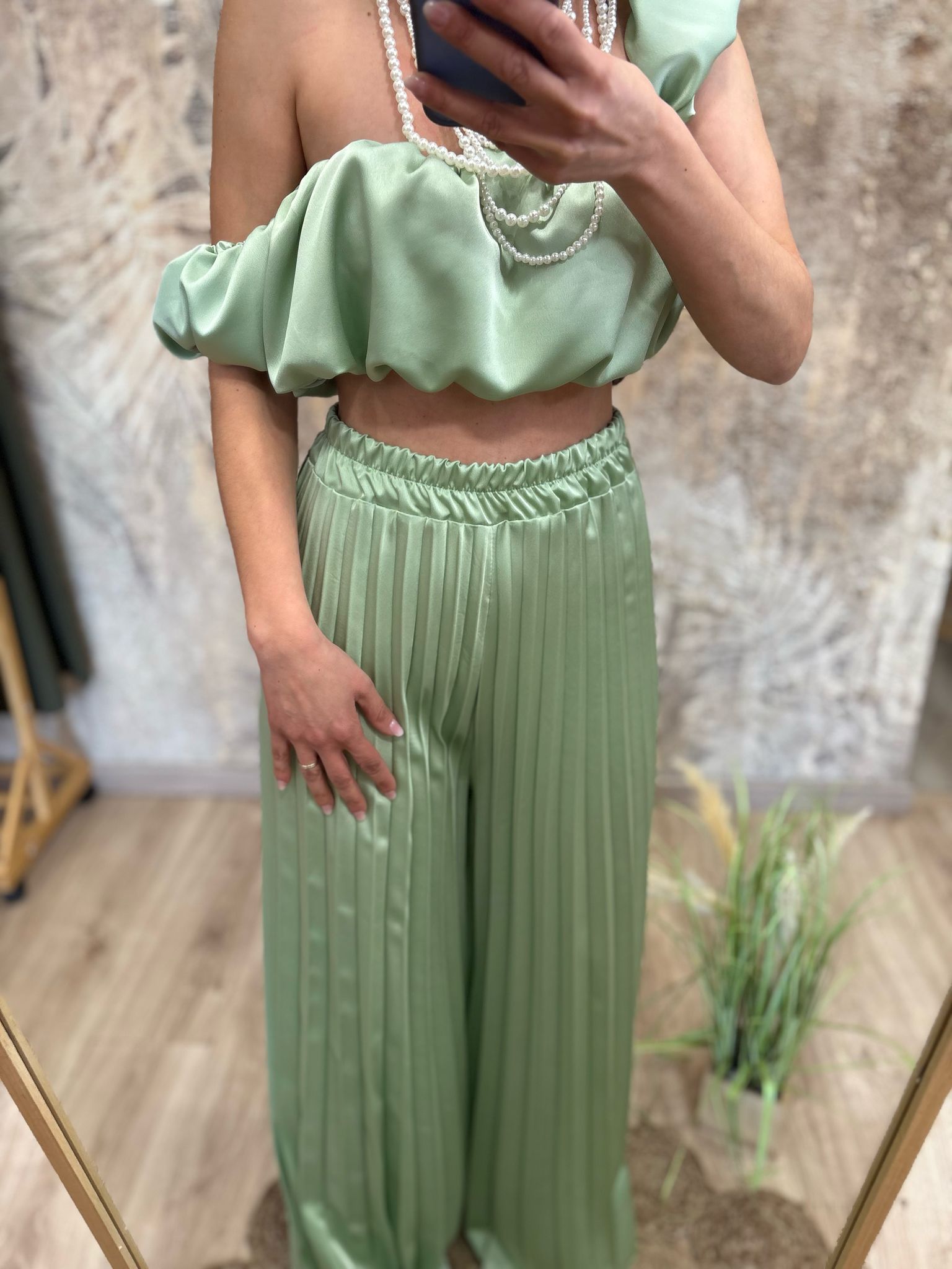 coordinato con pantalone plissettato e top