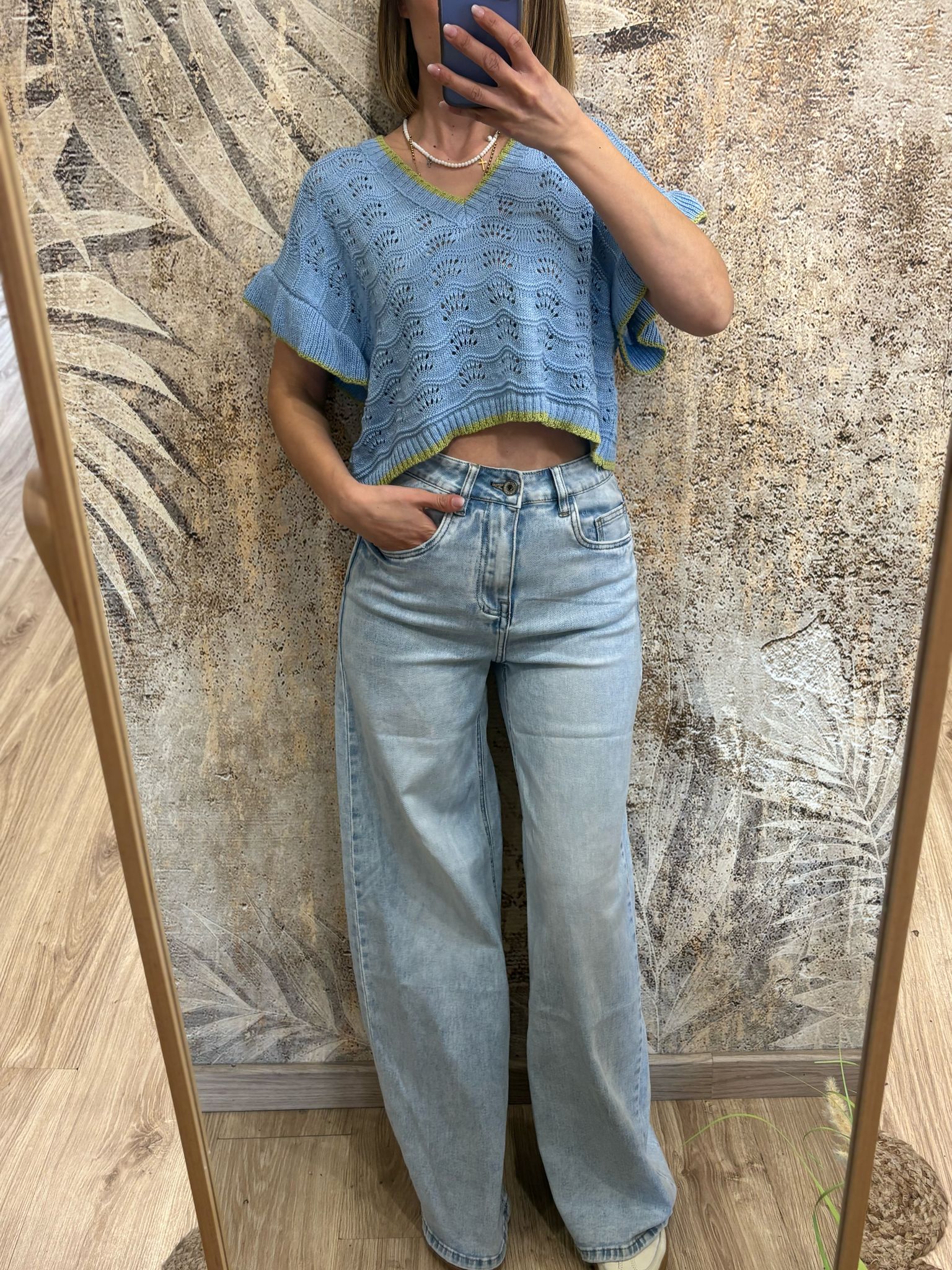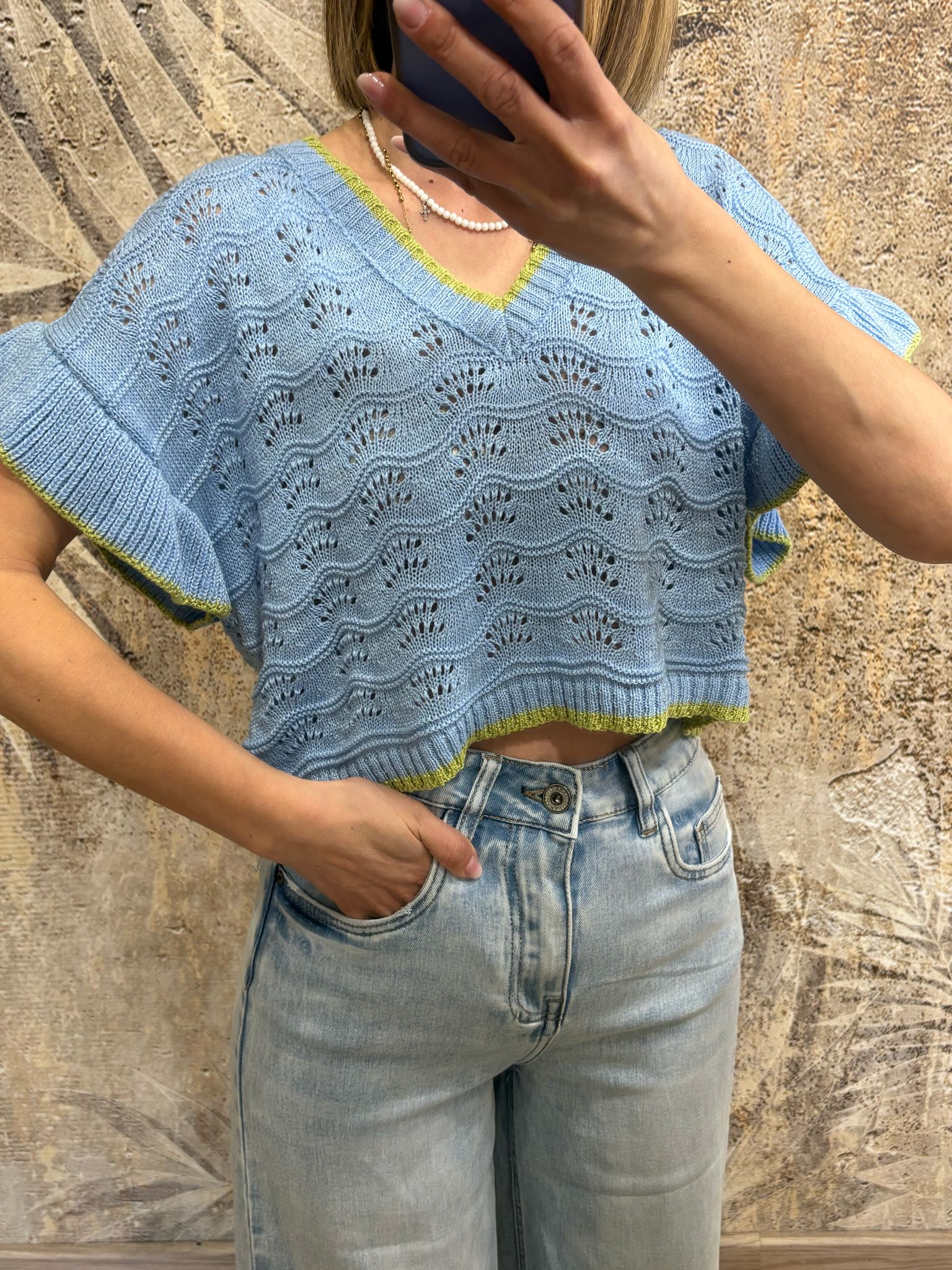 maglia con maniche voilà traforata